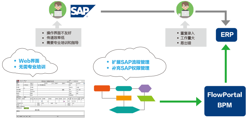 中科華智結(jié)合自身多年實(shí)施SAP ERP的經(jīng)驗(yàn),在為客戶做好ERP實(shí)施服務(wù)的同時(shí),為客戶提供業(yè)務(wù)流程的咨詢、業(yè)務(wù)流程的梳理和業(yè)務(wù)流程的搭建,通過和FlowPortal合作,為客戶提供一站式整體信息化解決方案。